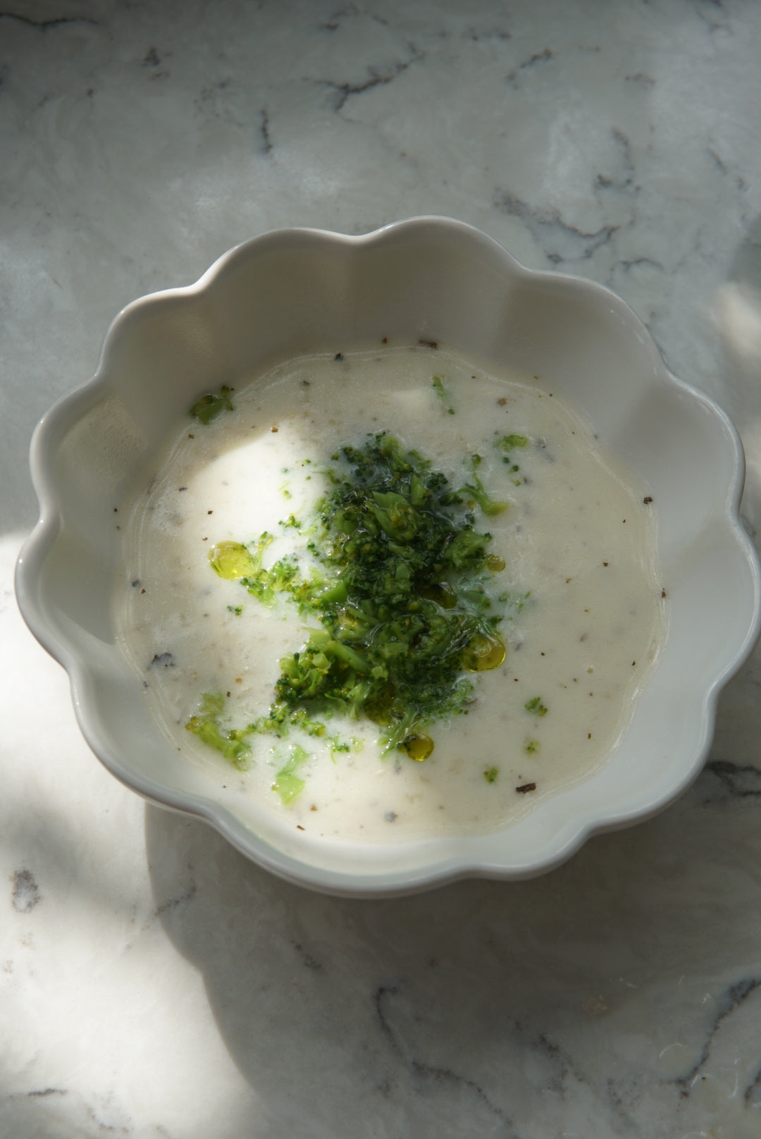 - Bu esnda brokolileri içme suyunda maksimum 7 dakika kaynatıp, soğuk sudan geçiriyoruz. Servis anında bir kaç dal alıp, incecik kıyarak tabağa ekliyoruz.